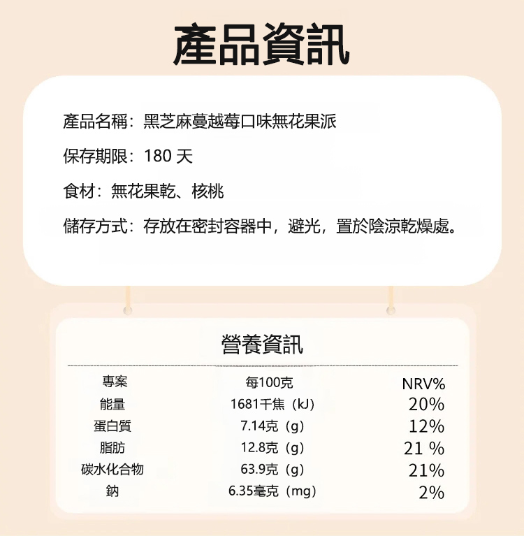 黑芝麻蔓越莓口味無花果派